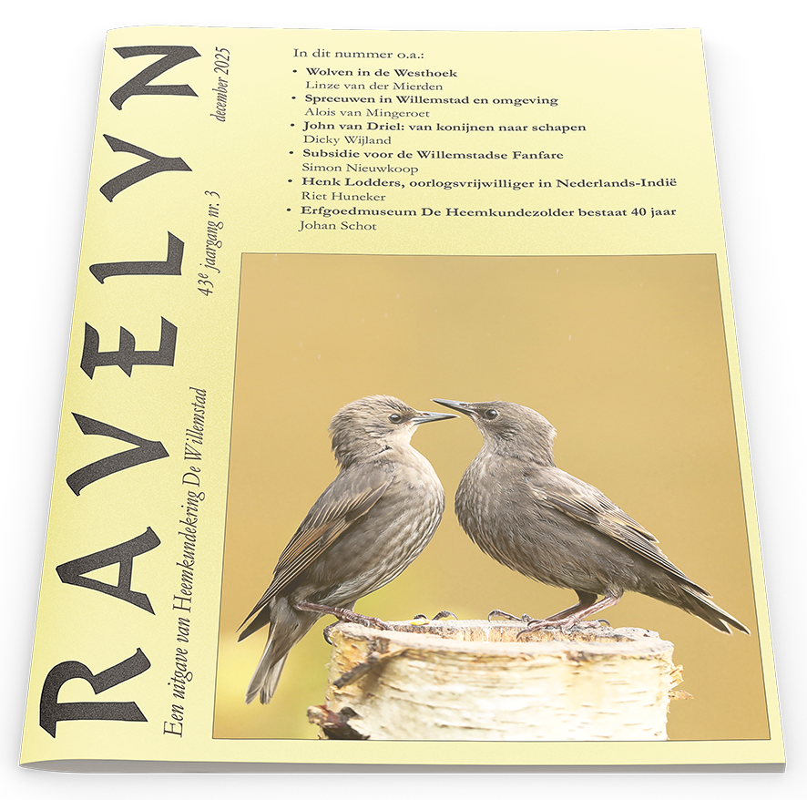 Het is een belangrijke pijler van onze vereniging waarmee we met onze leden in verbinding staan over datgene wat ons gemeenschappelijk bindt: de geschiedenis van Willemstad. Van een bescheiden periodiek is de Ravelyn inmiddels uitgegroeid tot een volwassen tijdschrift. De gratis ontvangst van de Ravelyn is al reden genoeg om u aan te melden als lid van onze heemkundekring.