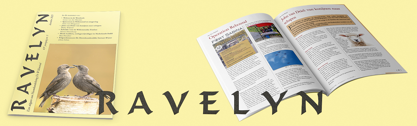 De Ravelyn, het periodiek van Heemkundekring De Willemstad is vernieuwd. Dit blad voor de leden van de Heemkundekring verschijnt drie keer per jaar en bevat een variatie aan artikelen over zowel de oude als ook de meer recente geschiedenis van Willemstad.